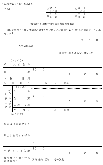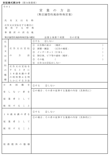 必要書類①:営業開始届(無店舗型性風俗営業開始届出書)