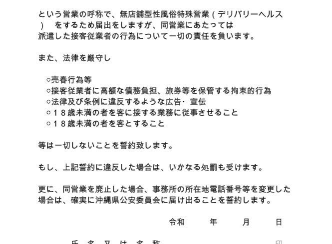 沖縄でデリヘルを開業する場合、必要なのは「許可」ではなく警察署への「届出」です。